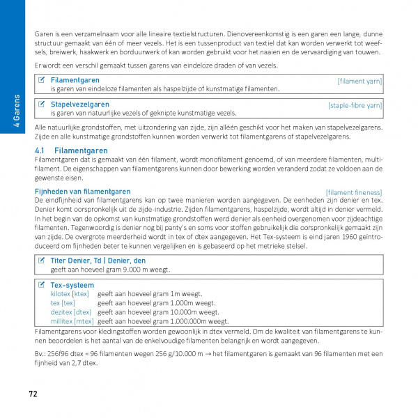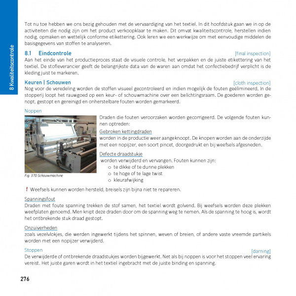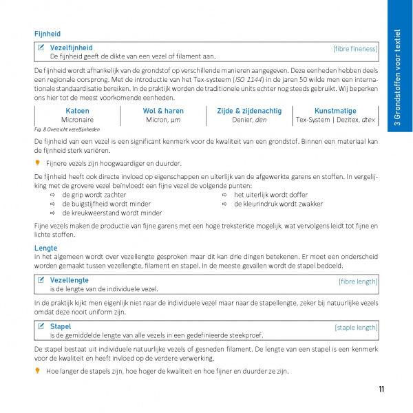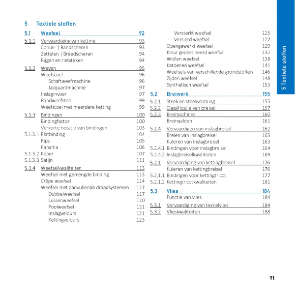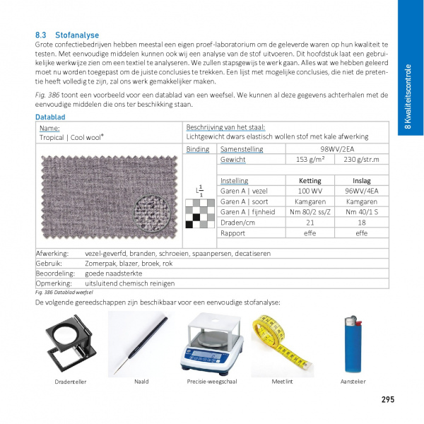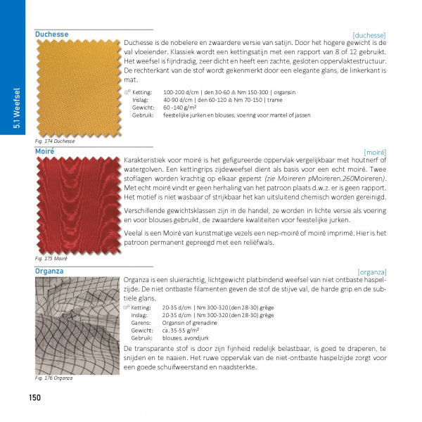 Het boek is geschikt voor beginners als voor professionals die hun vakbekwaamheid willen aanscherpen. Met meer dan 200 tekeningen worden technische details op een begrijpelijke manier verduidelijkt. Schema´s vatten de complexe verhalen samen. De ingewikkelde benaming van textiel wordt met meer dan 100 voorbeelden van garens, weefsels, breisels en vliesstoffen overzichtelijk, hun definitie en gebruik worden uiteraard ook belicht.